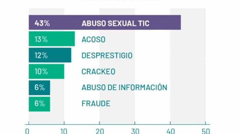 El informe detalla que el 43% de los casos de violencia digital atendidos en este periodo correspondieron a abuso sexual TIC, lo que lo convierte en el tipo de violencia más frecuente. Esta forma de abuso involucra la explotación erótica, íntima o sexual de la imagen de una persona a través de videos, fotografías o cualquier otro tipo de expresión mediante TIC. Otros tipos de violencia digital reportados incluyen acoso (13%), desprestigio mediante información falsa (12%) y crackeo, es decir, el acceso ilegal a sistemas informáticos para robar o modificar datos (10%).
