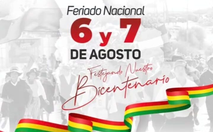 En conmemoración de los 200 años de la fundación de Bolivia, y en el marco de la celebración del Bicentenario, el Gobierno nacional, a través del ministro de Trabajo, Víctor Quispe Ticona, ha dispuesto de manera excepcional feriado nacional para el 7 de agosto.